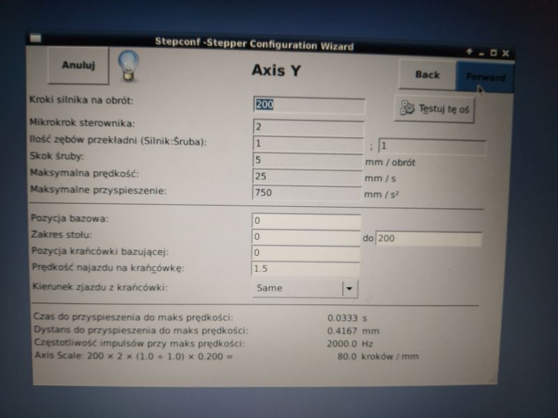 We also introduce controller time parameters - these are stepper / servo motor controllers. We should find time dependencies in the driver documentation.