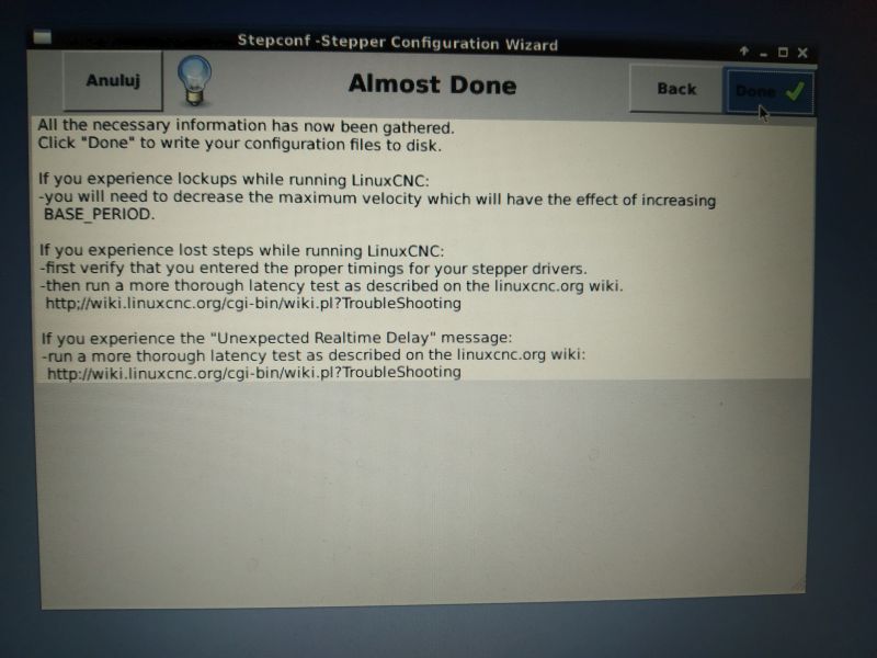 After installing the Linux operating system and LinuxCNC software, you need to create your own machine configuration to start controlling the machine. The most popular and the most commonly used method of machine control is control via the parallel port of the LPT computer. A configurator (so-called Wizard) called Stepconf Wizard is provided with LinuxCNC. Stepconf Wizard is used to create your own machine configuration using LPT as a computer interface.