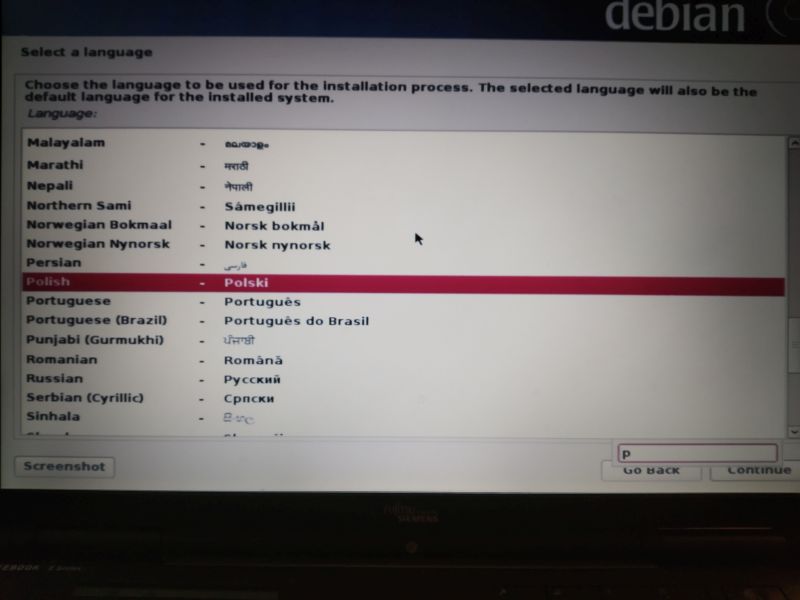 4. Place the pendrive with the installation image in the USB socket of the computer and start the computer