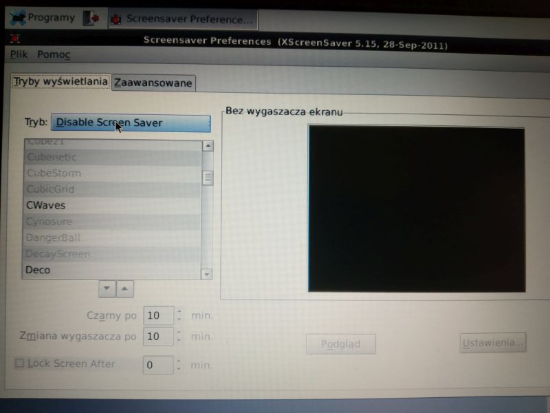 We go to Programs-> Settings-> Screen saver