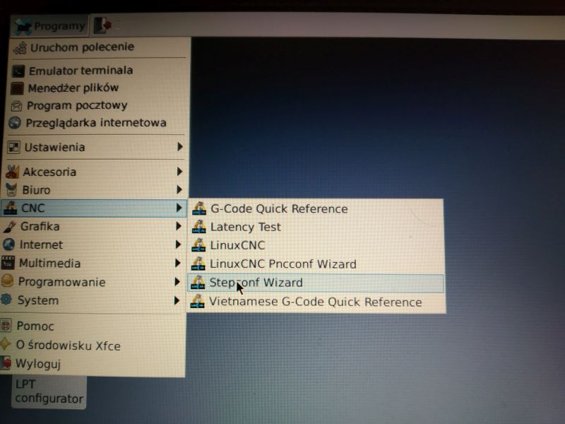 To start the Stepconf Wizard, go to the menu: Programs-> CNC-> Stepconf Wizard