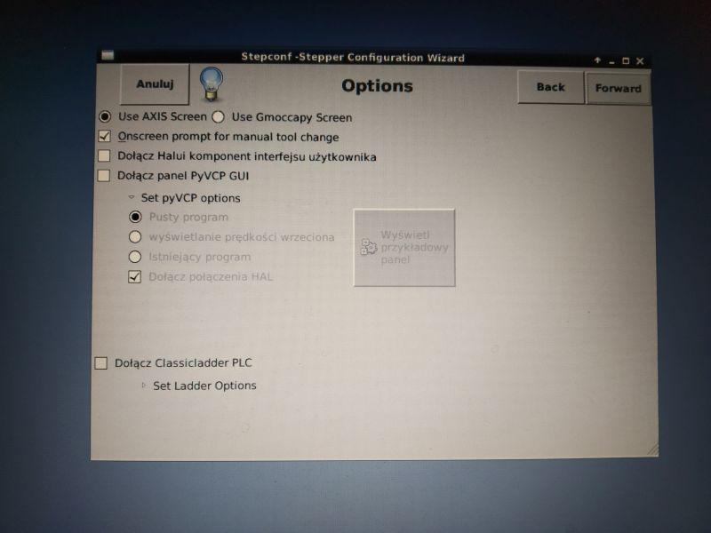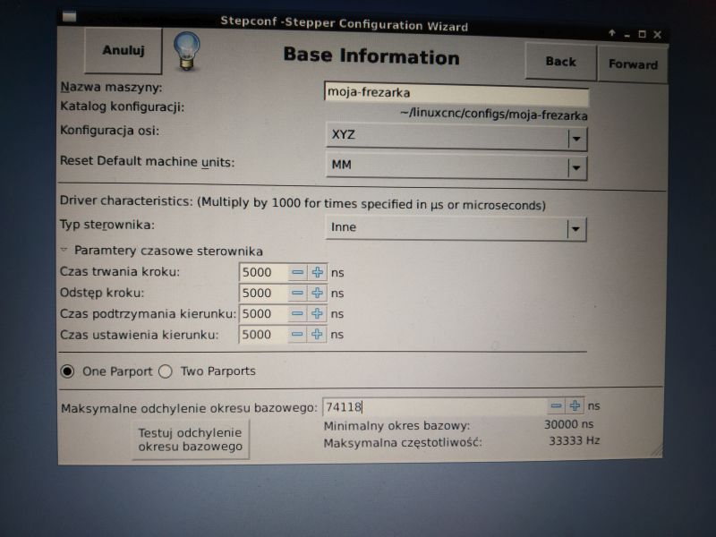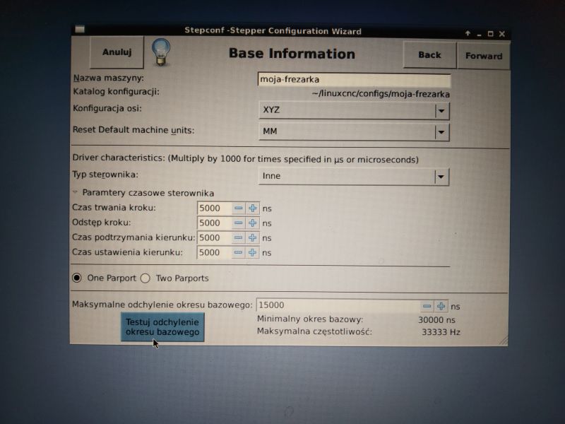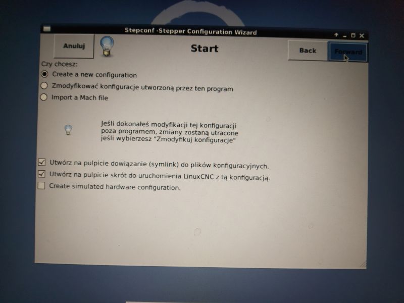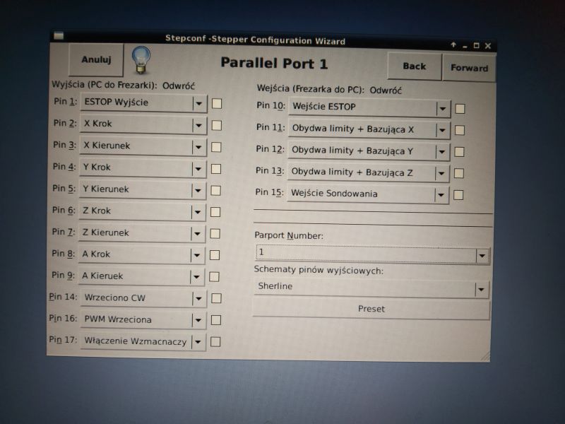 After installing the Linux operating system and LinuxCNC software, you need to create your own machine configuration to start controlling the machine. The most popular and the most commonly used method of machine control is control via the parallel port of the LPT computer. A configurator (so-called Wizard) called Stepconf Wizard is provided with LinuxCNC. Stepconf Wizard is used to create your own machine configuration using LPT as a computer interface.