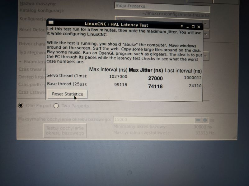 The test window will start. See article LinuxCNC - hardware requirements for correctly performing the Latency test.