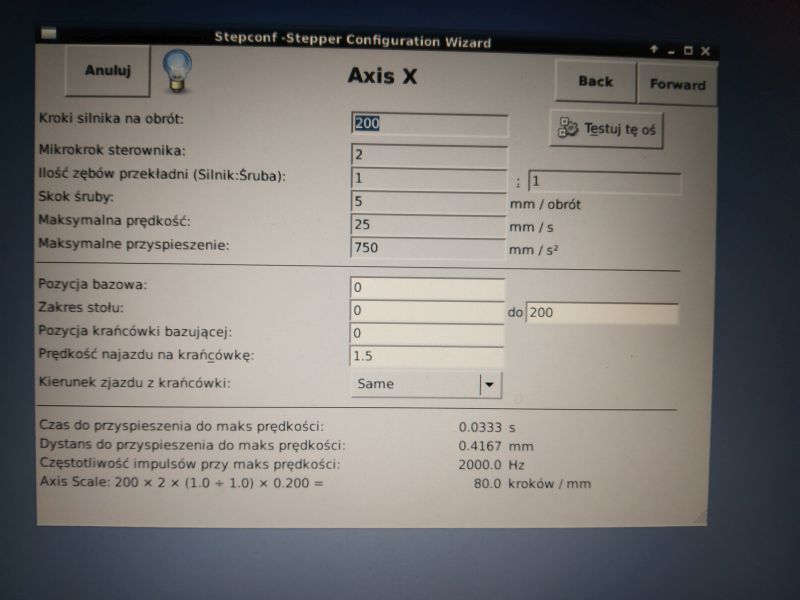 Next, we configure the machine axes in turn (number of steps, speeds, ratios)