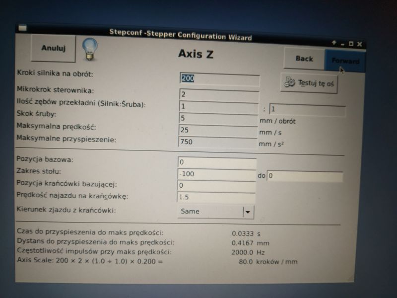We also introduce controller time parameters - these are stepper / servo motor controllers. We should find time dependencies in the driver documentation.