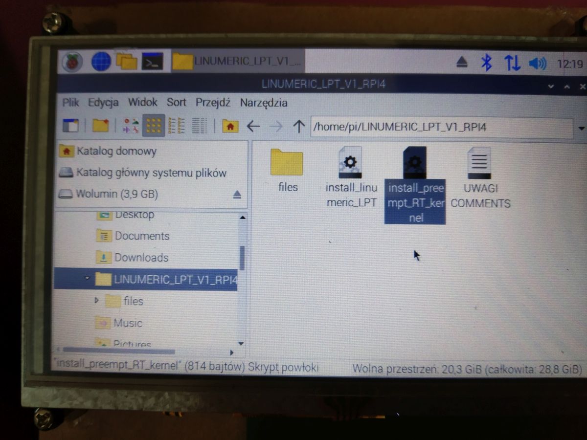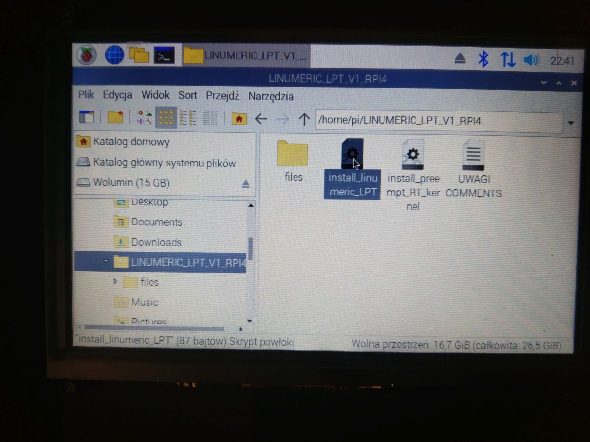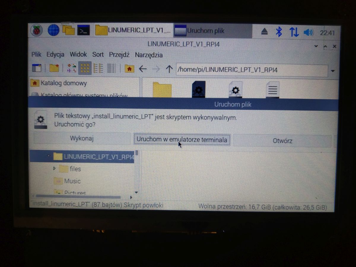 Then again go to the LINUMERIC_LPT_V1_RPI4 directory and double-click on the install_linumeric_LPT file