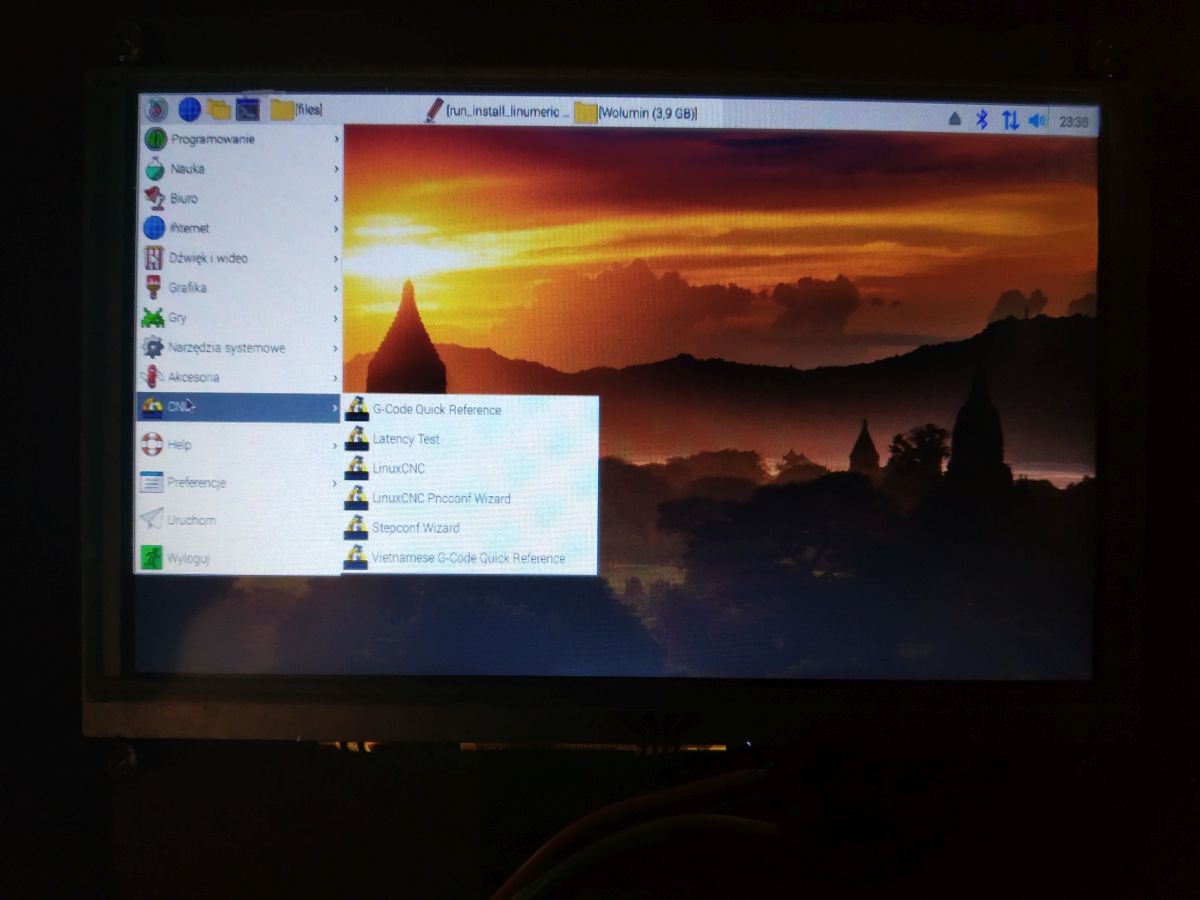 And on the LinuxCNC menu