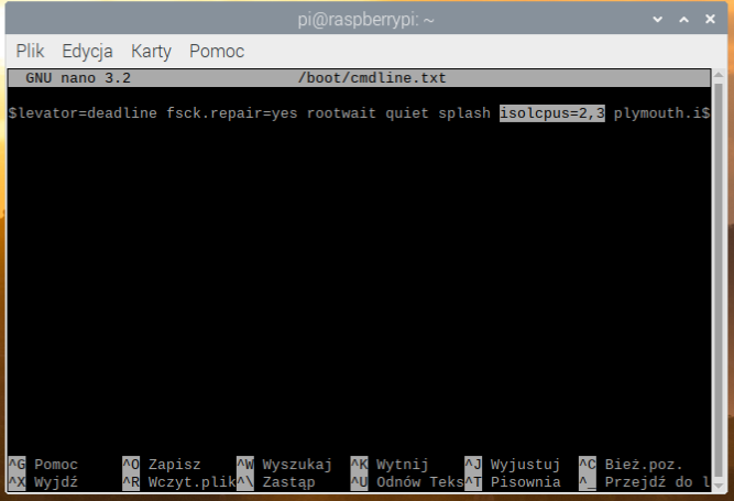 sudo nano /boot/cmdline.txt