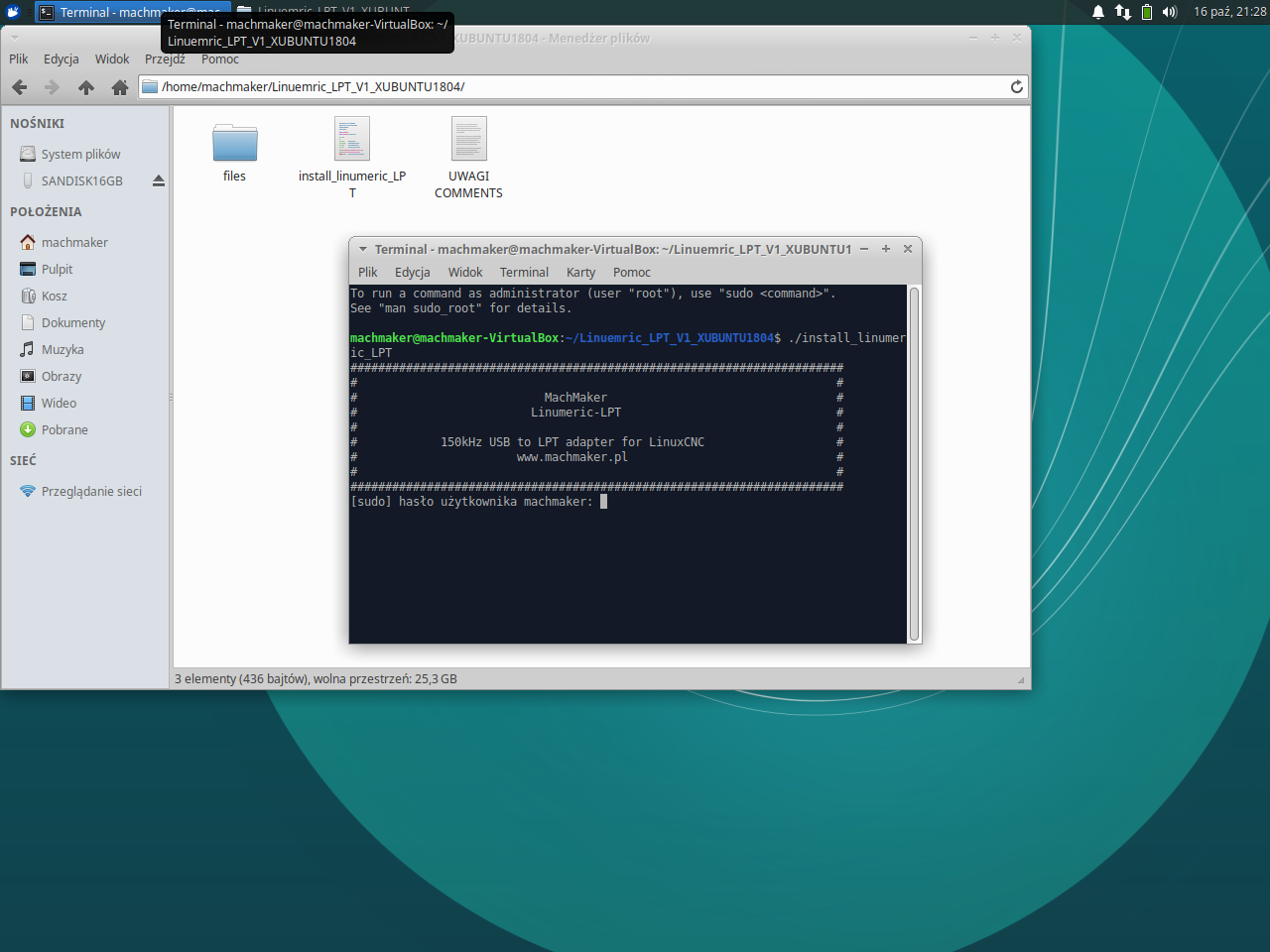 To install Linumeric-LPT on your computer, you can use a slightly more modern solution and use Xubuntu 18.04.5. The installer is based on the distribution prepared by the user tuxcnc from the www.cnc.info.pl forum who prepared it and made available the installer of the Xubuntu system on 18.04.5 with the PREEMPT_RT real-time kernel, version 5.6.19. The system prepared by tuxcnc can be downloaded by clicking on xubuntu-18.04.5-tuxcnc.1-amd64.iso.