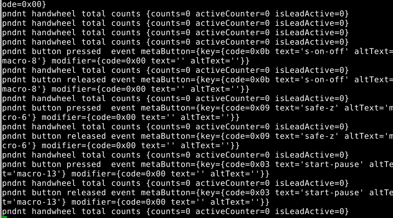 Uruchamiamy nasz zadajnik i kręcimy kółkiem lub wciskamy przyciski, powinny się pojawiać w terminalu sygnały od zadajnika.